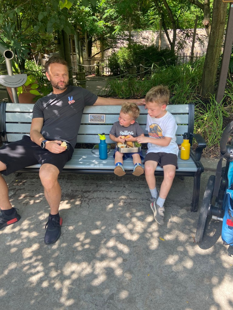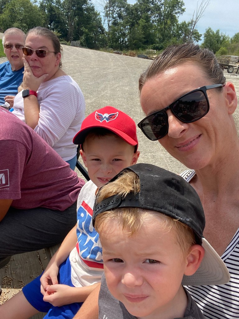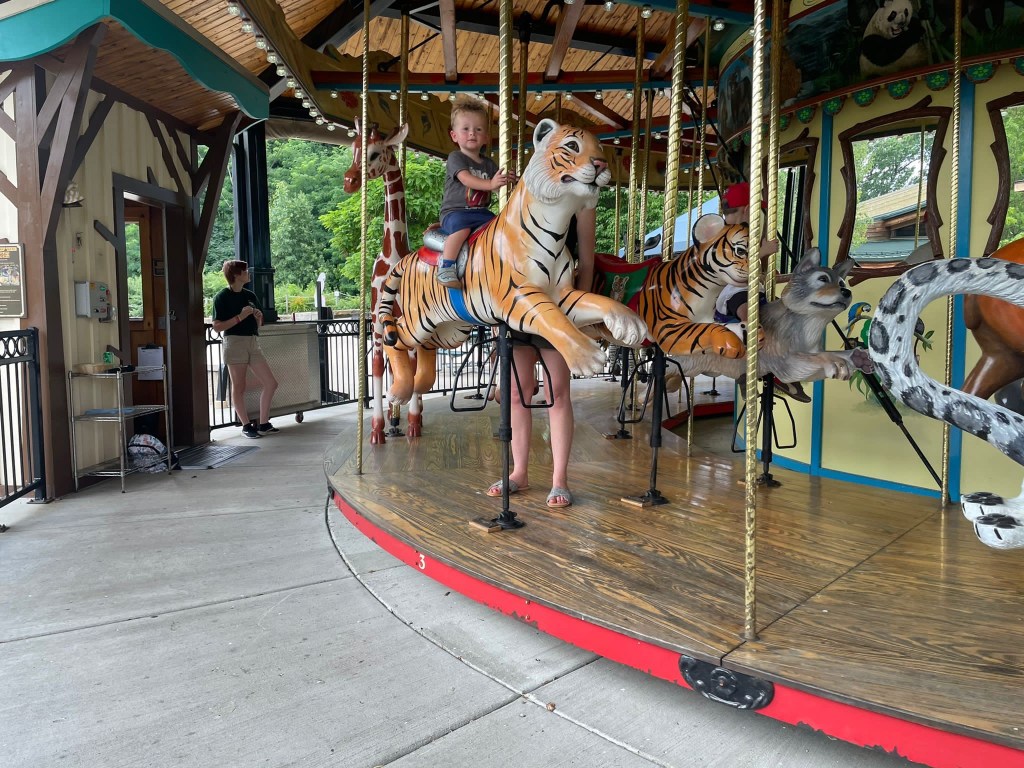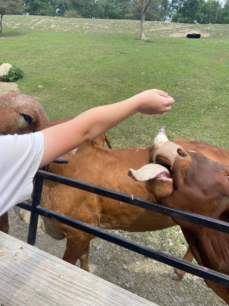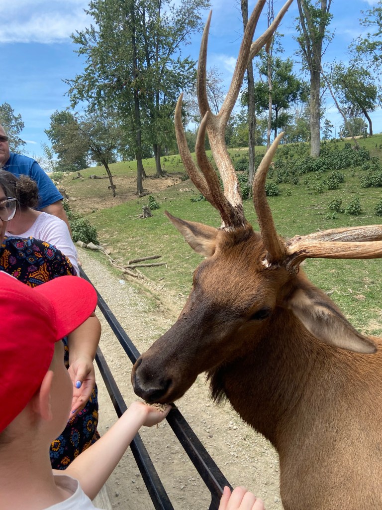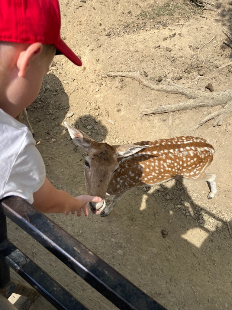 Am Samstag ging’s ihm aber soweit wieder besser und da Sascha mit ein paar Arbeitskollegen Dragonboat fahren war, haben wir zu dritt einen Ausflug gemacht. Ca. 45 Minuten südlich von uns gibt es die Walnut Creek Farm, eine von Amish betriebene Farm mit vielen unterschiedlichen Tieren, sowohl heimischen wie Rehe, Büffel, Lamas aber auch exotischen Tieren wie Zebras, Giraffen und Kamelen…man kann entweder selbst mit seinem Auto durchfahren oder – so wie wir – mit einem Pferdewagen. Das war echt toll und die kids hatten eine Menge Spaß. Vor allem Oskar hat jedes Tier ohne Berührungsängste gefüttert.